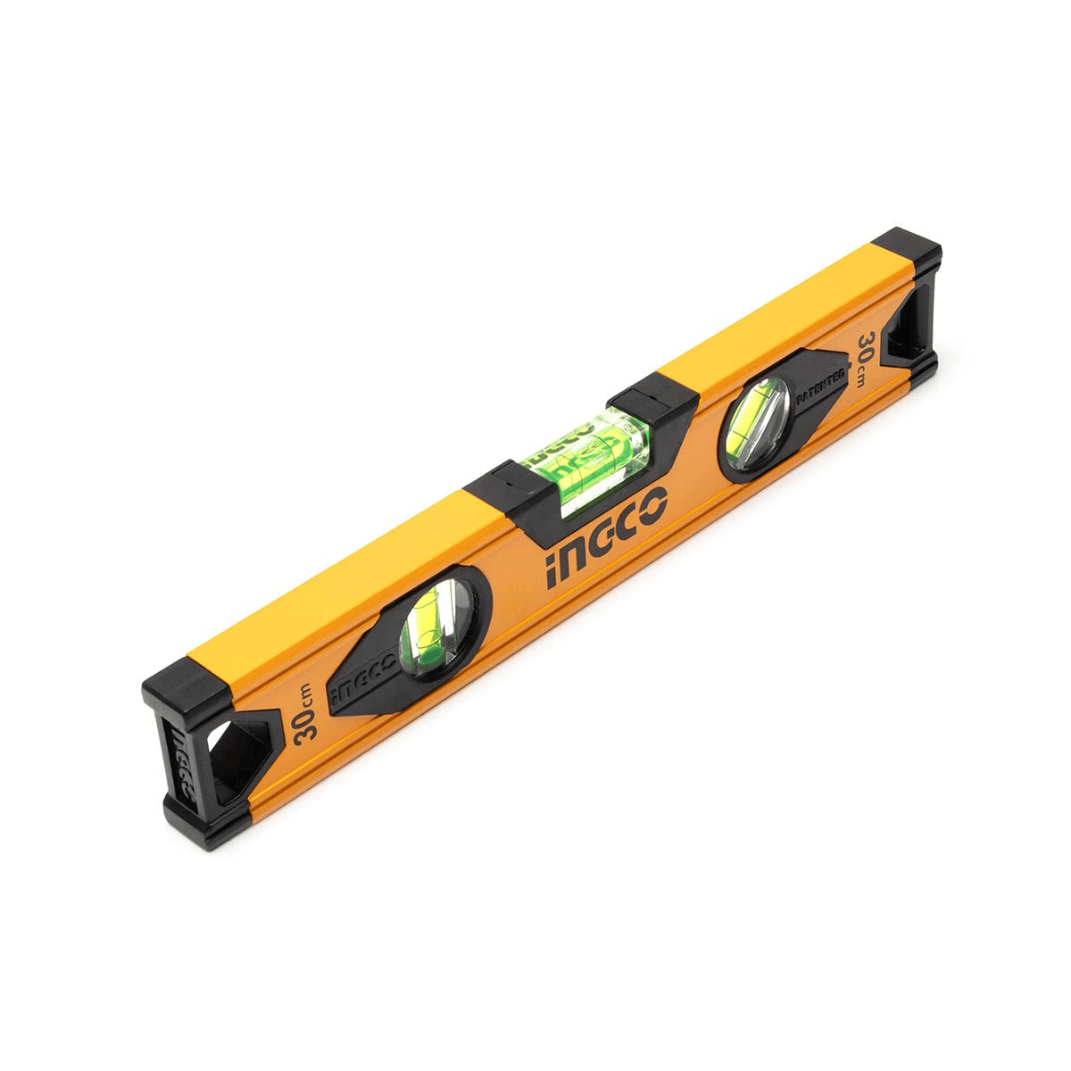ميزان مياه من إنكو مصنوع من الألومنيوم أو البلاستيك، مزود بعيون دقيقة لقياس الاستواء بدقة عالية، خفيف ومتين، مناسب للأعمال الإنشائية والتركيبات.