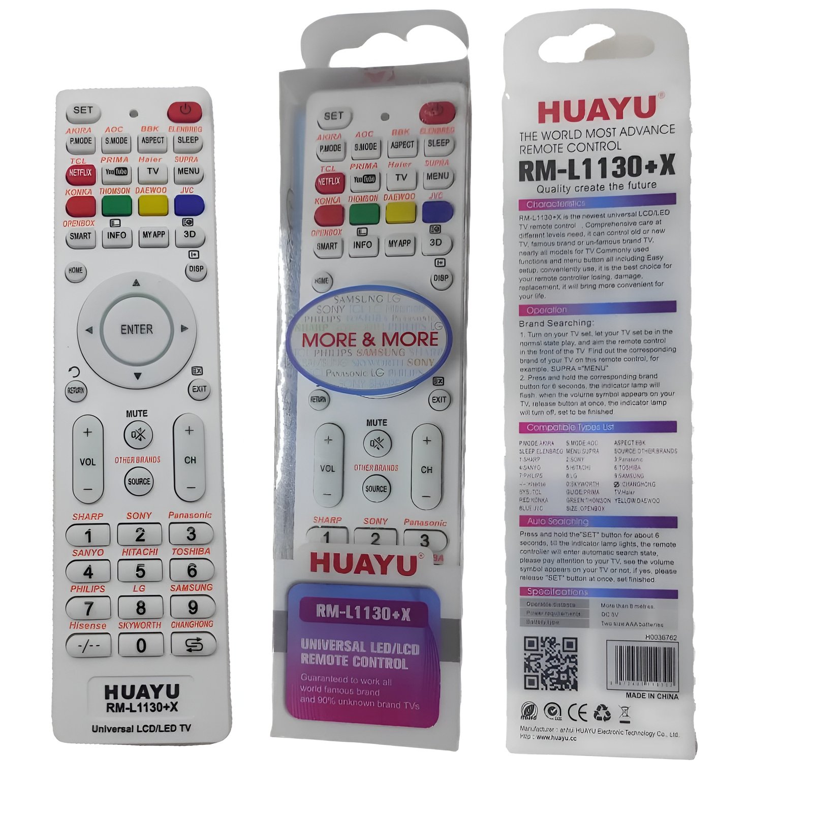 ريموت شامل متوافق مع أغلب شاشات LED وLCD، سهل الاستخدام، لا يحتاج برمجة مع معظم الأجهزة، يعمل ببطاريتين AAA.